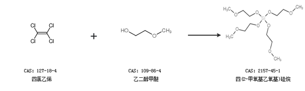 2.通过四氯乙烯和乙二醇甲醚合成四(2-甲氧基乙氧基)硅烷