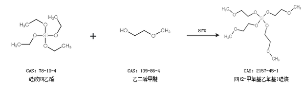 1.通过硅酸四乙酯和乙二醇甲醚合成四(2-甲氧基乙氧基)硅烷,收率约87%;