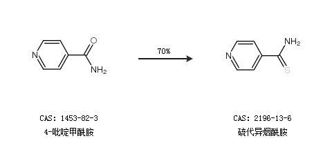 1.通过4-吡啶甲酰胺合成硫代异烟酰胺,收率约70%;