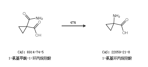 1.通过1-氨基甲酰-1-环丙烷羧酸合成1-氨基环丙烷羧酸,收率约47%;