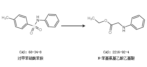 2.通过对甲苯硫酰苯胺合成N-苯基氨基乙酸乙基醚