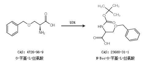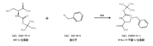1.通过BOC-L-丝氨酸和溴化苄合成N-Boc-O-苄基-L-丝氨酸,收率约99%;