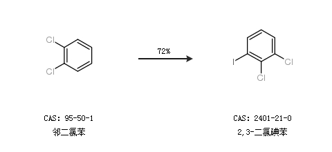 1.通过邻二氯苯合成2,3-二氯碘苯,收率约72%;