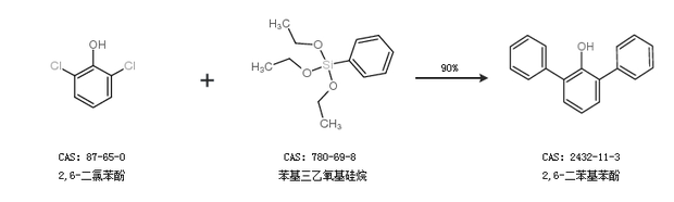 1.通过2,6-二氯苯酚和苯基三乙氧基硅烷合成2,6-二苯基苯酚,收率约90%;
