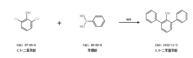 2.通过2,6-二氯苯酚和苯硼酸合成2,6-二苯基苯酚,收率约96%;