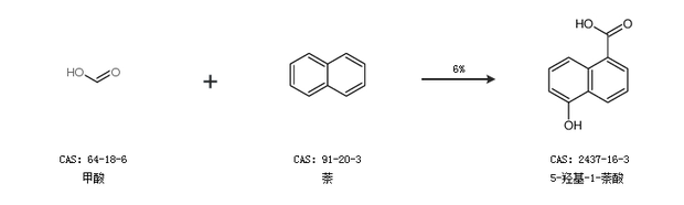 1.通过甲酸和萘合成5-羟基-1-萘酸,收率约6%;
