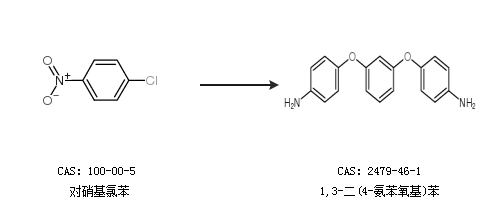 2.通过对硝基氯苯合成1,3-二(4-氨苯氧基)苯
