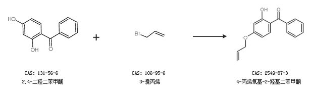 1.通过2,4-二羟二苯甲酮和3-溴丙烯合成4-丙烯氧基-2-羟基二苯甲酮