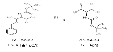 2.通过N-Boc-O-苄基-L-苏氨酸合成Boc-L-苏氨酸,收率约97%;