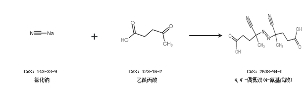 1.通过氰化钠和乙酰丙酸合成4,4''-偶氮双(4-氰基戊酸)