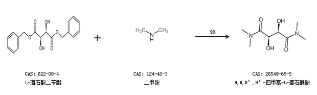2.通过L-酒石酸二苄酯和二甲胺合成N,N,N’,N’-四甲基-L-酒石酰胺,收率约9%;