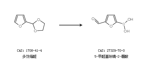 2.通过多效缩醛合成5-甲醛基呋喃-2-硼酸