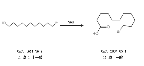 2.通过11-溴-1-十一醇合成11-溴十一酸,收率约96%;