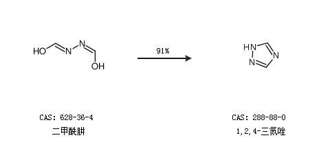 1.通过二甲酰肼合成1,2,4-三氮唑,收率约91%;