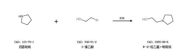 1.通过四氢吡咯和2-溴乙醇合成N-(2-羟乙基)-吡咯烷,收率约83%;