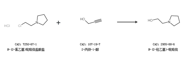 2.通过N-(2-氯乙基)吡咯烷盐酸盐和2-丙炔-1-醇合成N-(2-羟乙基)-吡咯烷