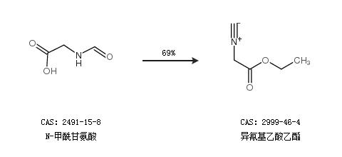 2.通过N-甲酰甘氨酸合成异氰基乙酸乙酯,收率约69%;