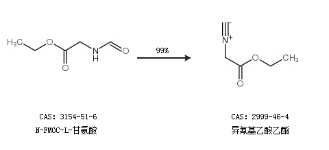 1.通过N-FMOC-L-甘氨酸合成异氰基乙酸乙酯,收率约99%;