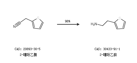1.通过2-噻吩乙腈合成2-噻吩乙胺,收率约98%;