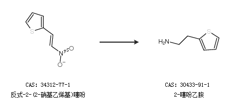 2.通过反式-2-(2-硝基乙烯基)噻吩合成2-噻吩乙胺