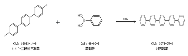 1.通过4,4''''-二碘对三联苯和苯硼酸合成对五联苯,收率约87%;