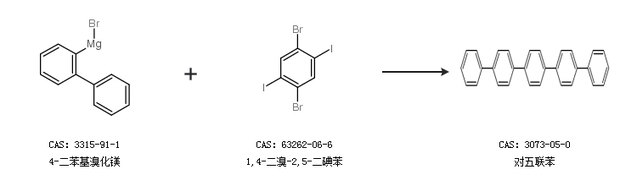 2.通过4-二苯基溴化镁和1,4-二溴-2,5-二碘苯合成对五联苯