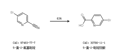 2.通过5-溴-2-氰基吡啶合成5-溴-2-吡啶羧酸,收率约63%;