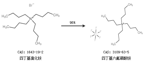 1.通过四丁基溴化铵合成四丁基六氟磷酸铵,收率约96%;