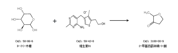 2.通过D-(+)-木糖和维生素B1合成2-甲基四氢呋喃-3-酮