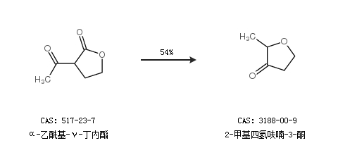 1.通过α-乙酰基-γ-丁内酯合成2-甲基四氢呋喃-3-酮,收率约54%;