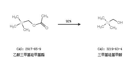 1.通过乙酸三甲基硅甲基酯合成三甲基硅基甲醇,收率约92%;