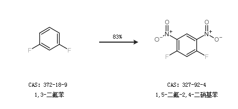 1.通过1,3-二氟苯合成1,5-二氟-2,4-二硝基苯,收率约83%;