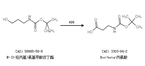 2.通过N-(3-羟丙基)氨基甲酸叔丁酯合成Boc-beta-丙氨酸,收率约49%;