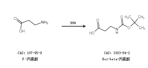 1.通过β-丙氨酸合成Boc-beta-丙氨酸,收率约99%;