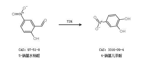 2.通过5-硝基水杨醛合成4-硝基儿茶酚,收率约73%;