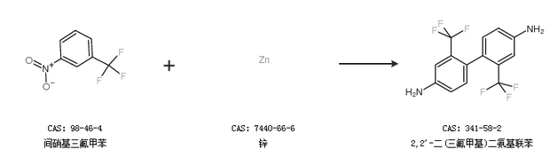 1.通过间硝基三氟甲苯和锌合成2,2''-二(三氟甲基)二氨基联苯