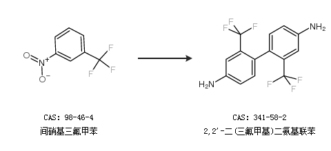 2.通过间硝基三氟甲苯合成2,2''-二(三氟甲基)二氨基联苯