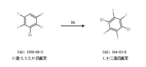 2.通过1-溴-2,3,5,6-四氟苯合成1,4-二溴四氟苯,收率约8%;