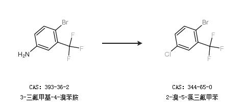 2.通过3-三氟甲基-4-溴苯胺合成2-溴-5-氯三氟甲苯