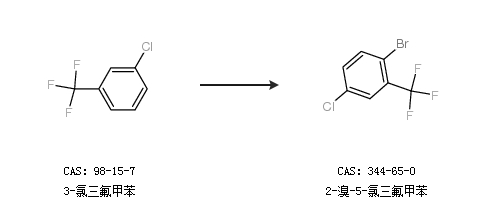1.通过3-氯三氟甲苯合成2-溴-5-氯三氟甲苯