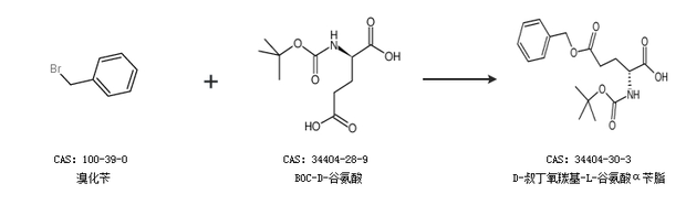 2.通过溴化苄和BOC-D-谷氨酸合成D-叔丁氧羰基-L-谷氨酸α苄脂