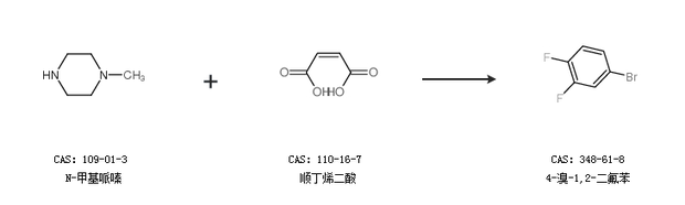 1.通过N-甲基哌嗪和顺丁烯二酸合成4-溴-1,2-二氟苯