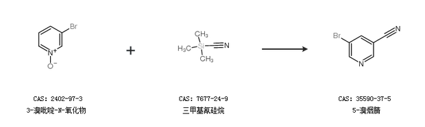1.通过3-溴吡啶-N-氧化物和三甲基氰硅烷合成5-溴烟腈