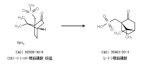 1.通过(1R)-(-)-10-樟脑磺酸 铵盐合成L-(-)樟脑磺酸