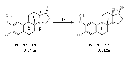 1.通过2-甲氧基雌素酮合成2-甲氧基雌二醇,收率约85%;
