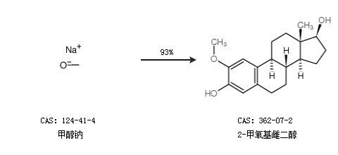 2.通过甲醇钠合成2-甲氧基雌二醇,收率约93%;