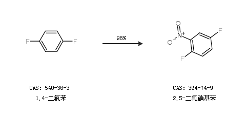 1.通过1,4-二氟苯合成2,5-二氟硝基苯,收率约98%;