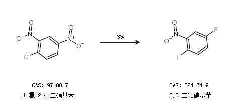 2.通过1-氯-2,4-二硝基苯合成2,5-二氟硝基苯,收率约3%;