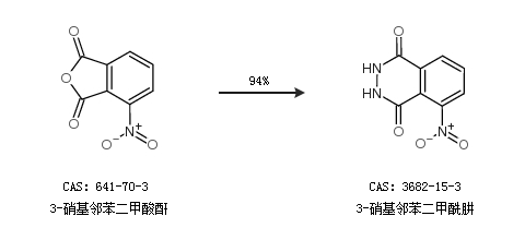 1.通过3-硝基邻苯二甲酸酐合成3-硝基邻苯二甲酰肼,收率约94%;