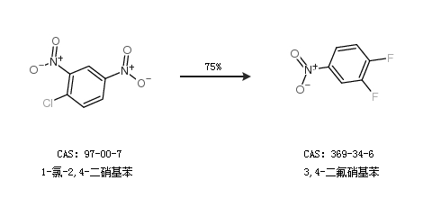 1.通过1-氯-2,4-二硝基苯合成3,4-二氟硝基苯,收率约75%;